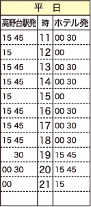* 7:15、19:00の便はご希望があれば 光が丘駅へ立ち寄ります。 ドライバーにお申し付けください。
