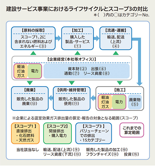 再生可能エネルギーは事業の上流や下流にも関わる事業者としても取り組んでいます。建材はサプライヤーを通じて購入しており、当社が原材料の採取に直接関わることはありませんが、木材等の製品では原材料の抽出地情報の収集や、環境に配慮した土地の利用の有無の確認などをサプライヤーに行っています。また「原材料の採取」や「加工」「流通・運搬」の環境負荷低減に関しては、第三者認証製品の取り組みを通じて、ライフサイクルでの環境負荷の把握に努めています。