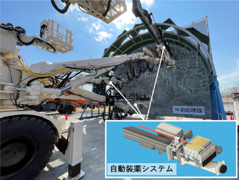 前田建設工業株式会社(本社:東京都千代田区、社長:前田操治、以下、「当社」)は、山岳トンネルの発破掘削における装薬作業を機械化・自動化し、作業員が切羽直下に立ち入ることなく、遠隔の装薬機の運転席からワンマンオペレーターで行うことができる自動装薬システム※1を搭載した『3ブーム自動装薬専用機(以下、「装薬機」)』を開発し、安全性と生産性の向上を実現しました。