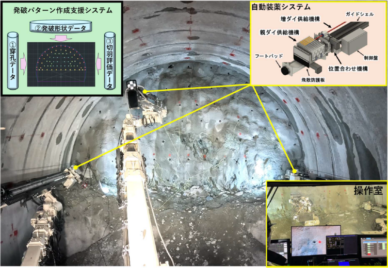 山岳トンネルで『3ブーム自動装薬専用機』を導入 実証施工開始~『発破パターン作成支援システム』との連携で生産性向上の促進~